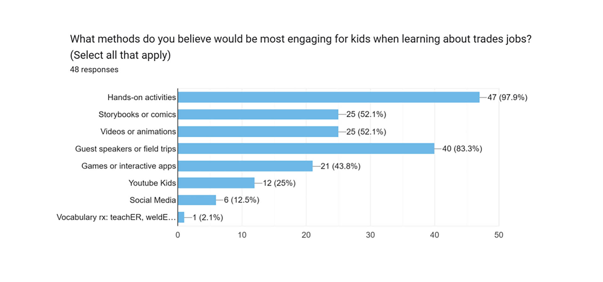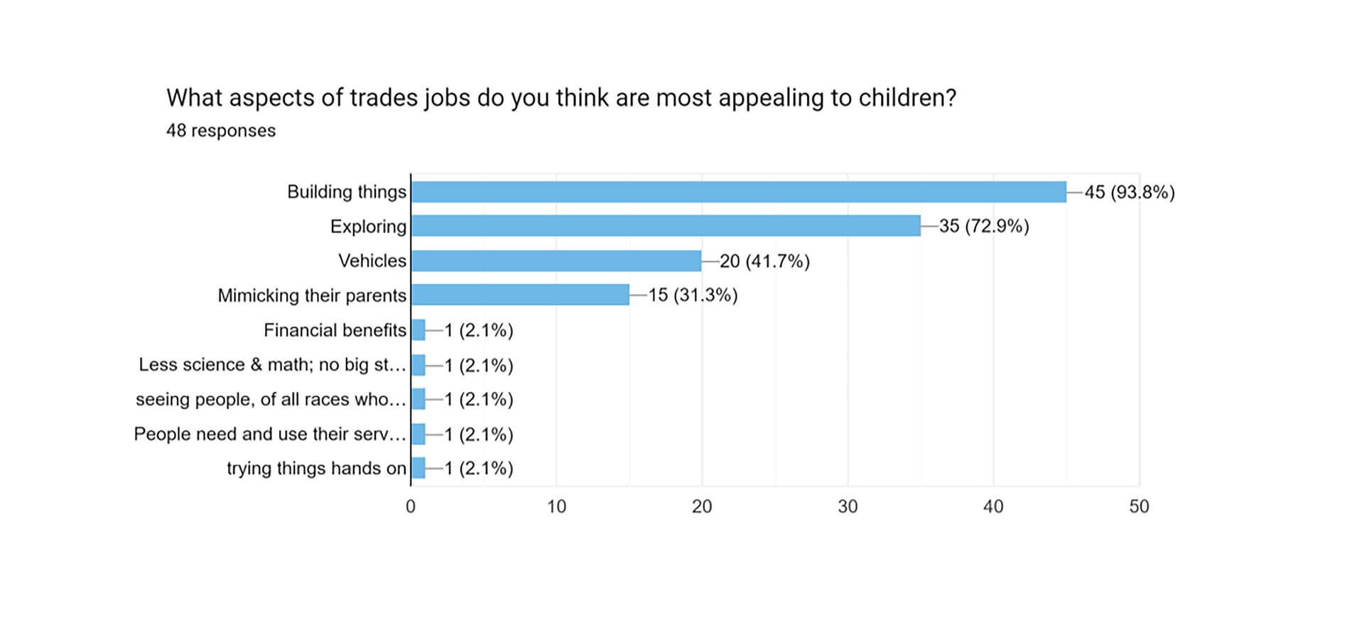 We surveyed 47 parents and teachers to gauge their experiences and opinions in regards to the trades.